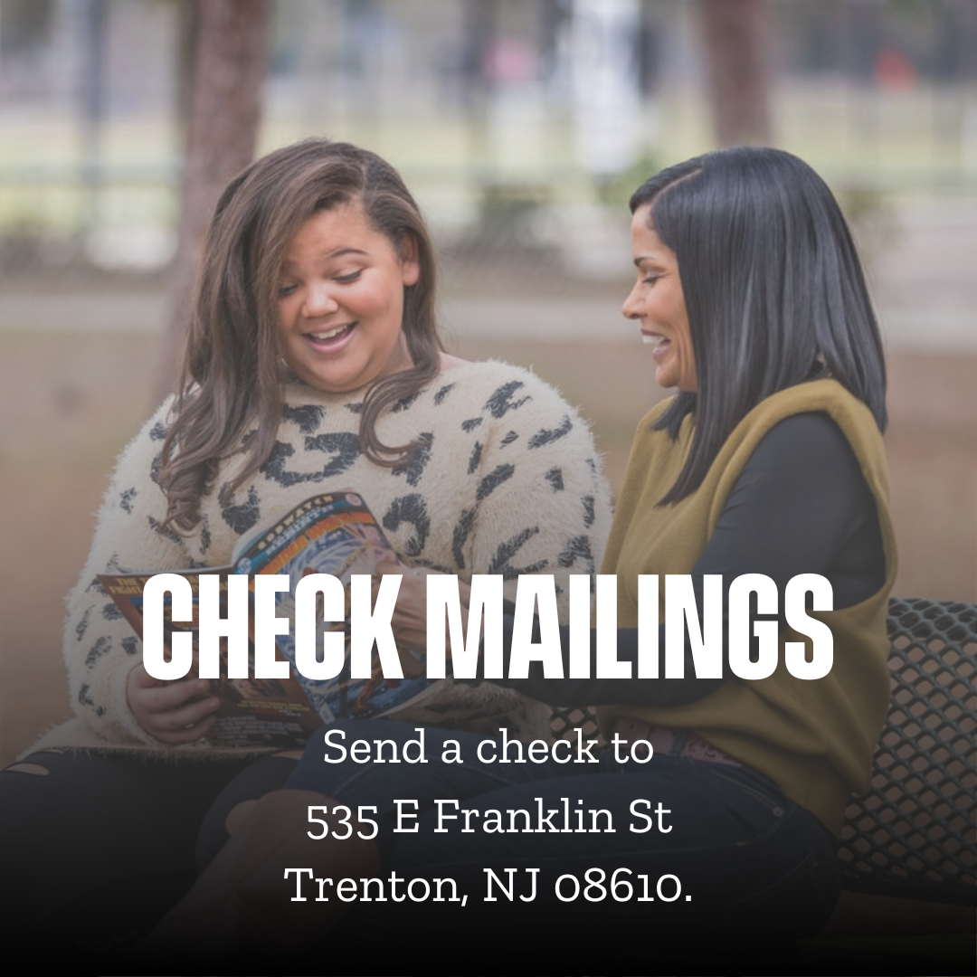 Send a Check to BBBS Mercer at 535 E Franklin Street Trenton, NJ 08610